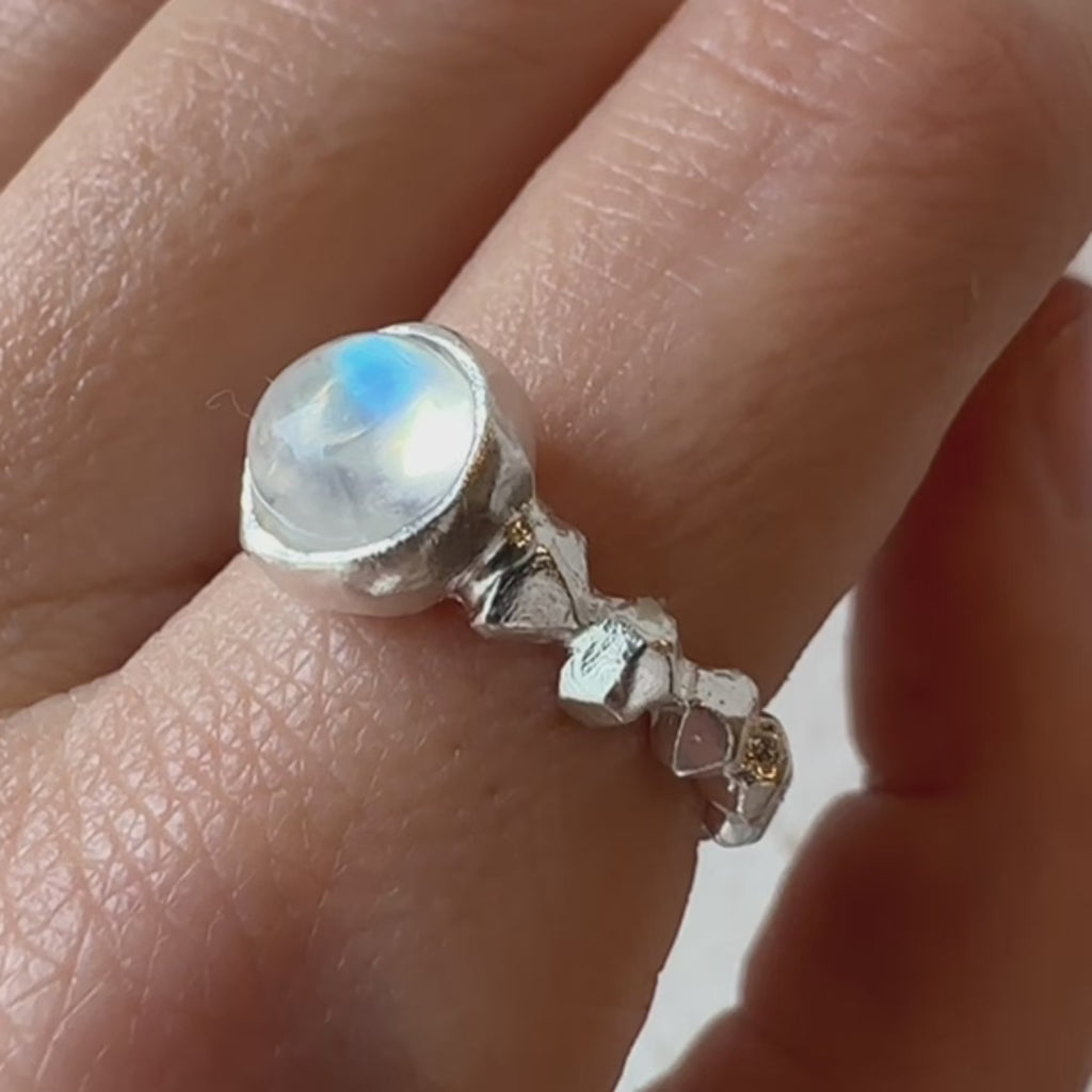 Anello roccia con labradorite bianca tonda