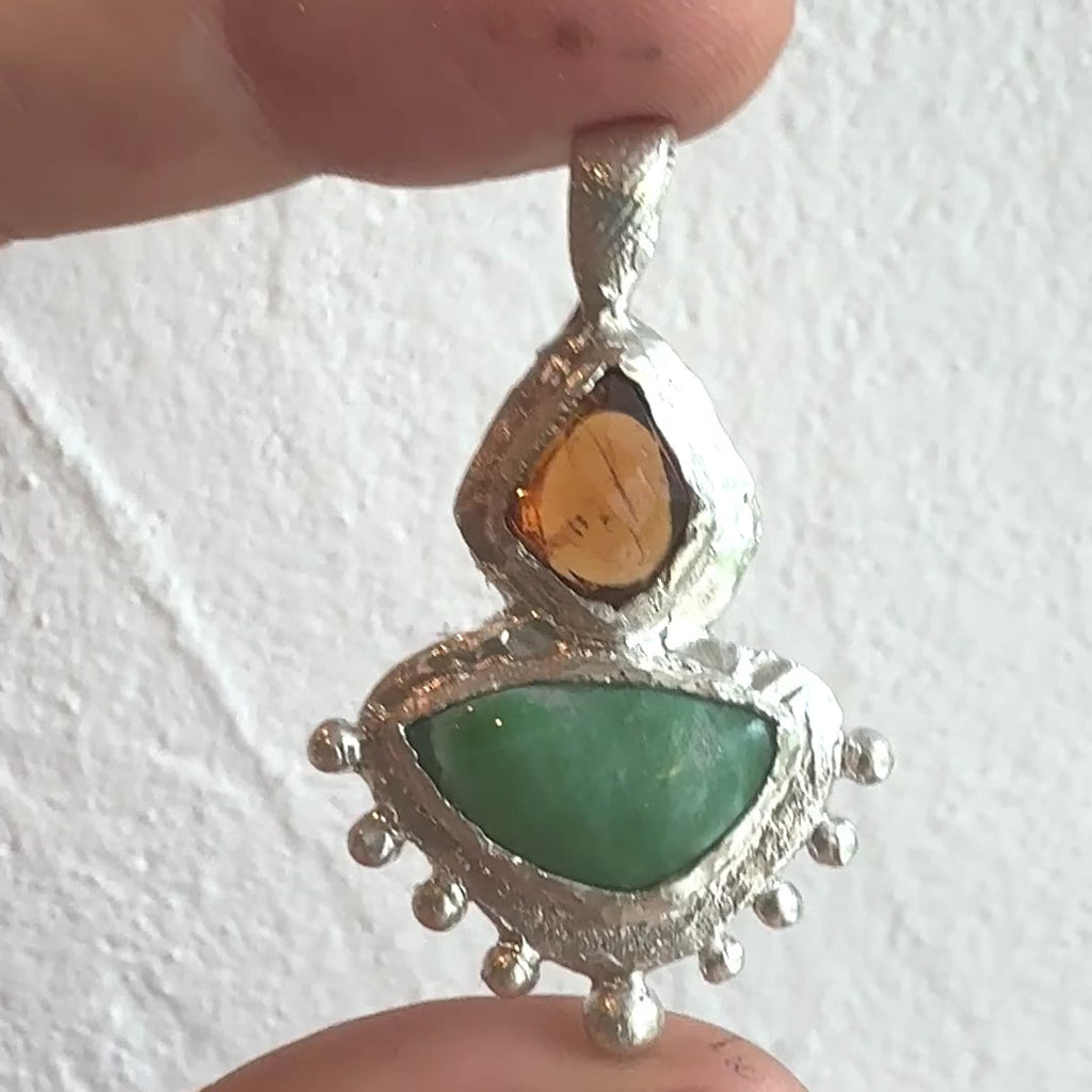 Le pietre sono un granato arancione e una giada. La giada viene dal Piemonte